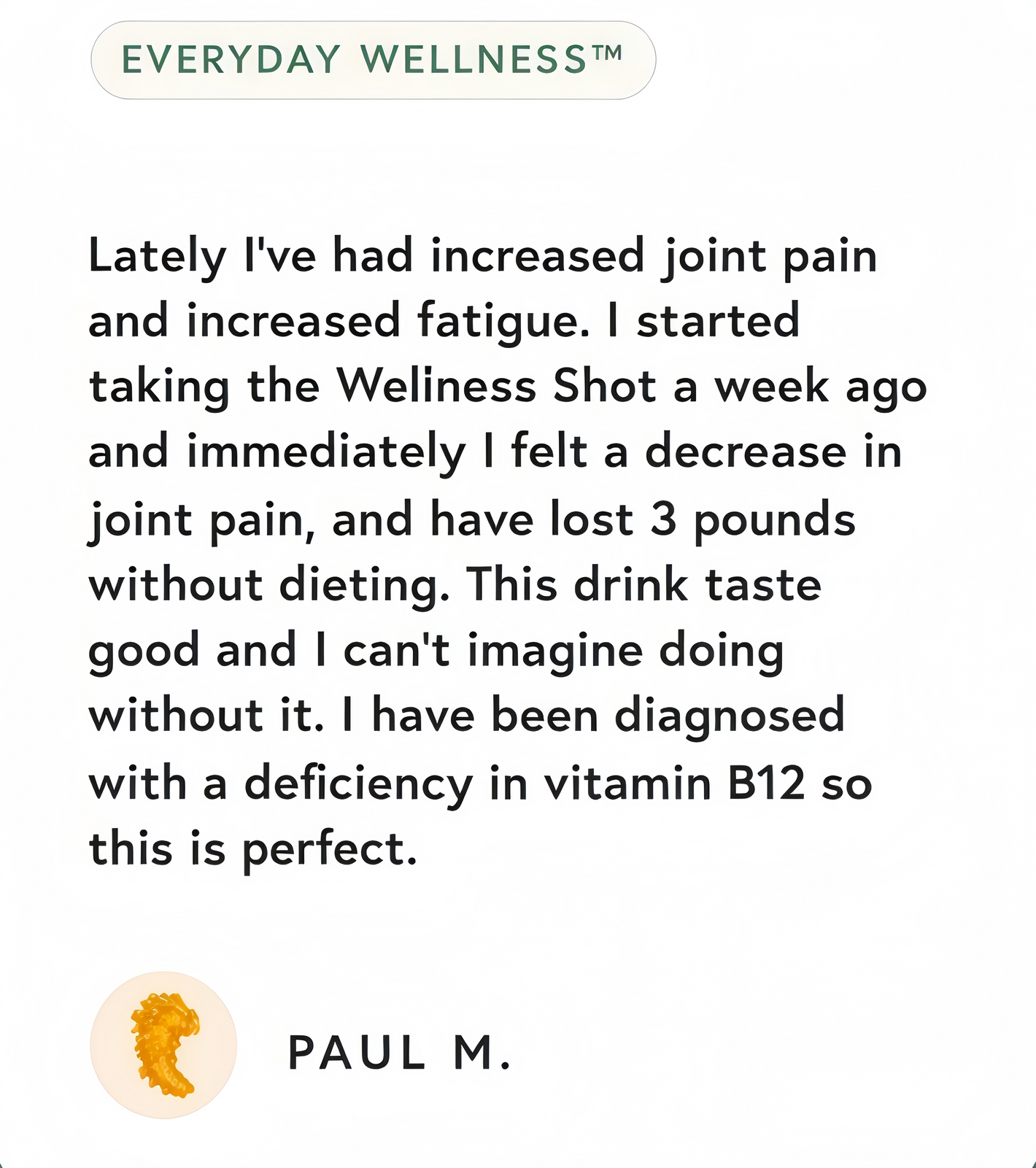Vitamin B12 is a foundational ingredient in Everyday Wellness™, included for its role in supporting overall vitality. B12 helps support the body’s natural energy metabolism, playing a part in keeping you feeling clear, focused, and energized throughout the day.*