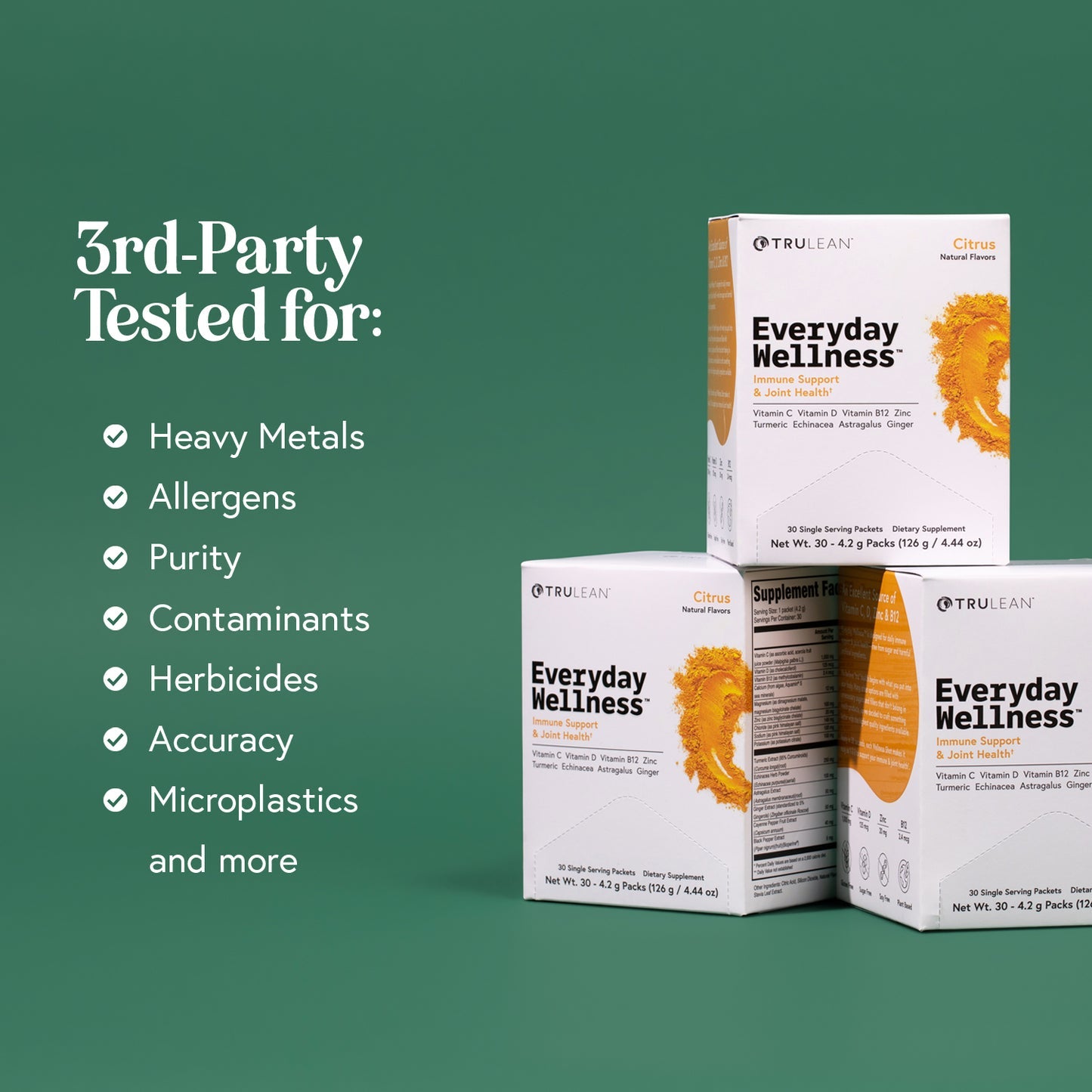 We believe in full transparency. That’s why every batch of Everyday Wellness™ is tested by independent third-party labs. While many health companies might skip this step, we make it a non-negotiable. Your health deserves proof, not compromise.Everyday Wellness™ is consistently tested for accuracy, heavy metals, microplastics, contaminants, allergens, and compliance.