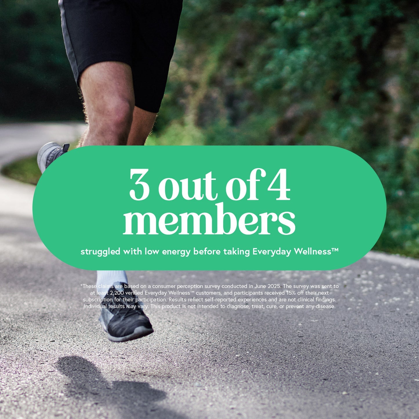 Vitamin B12 is a foundational ingredient in Everyday Wellness™, included for its role in supporting overall vitality. B12 helps support the body’s natural energy metabolism, playing a part in keeping you feeling clear, focused, and energized throughout the day.*